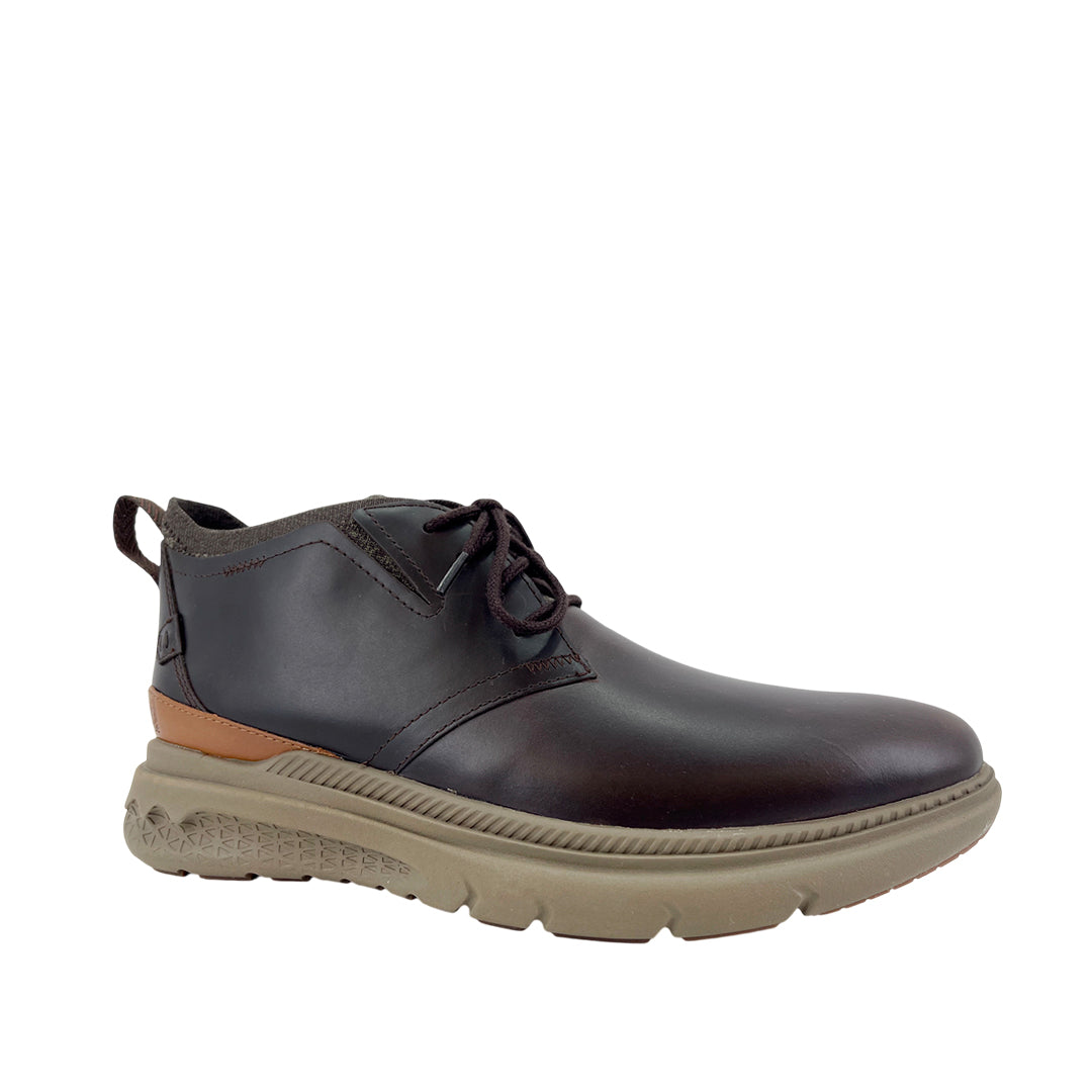 Botas casuales Excel Chukka para hombre en color café con tecnología The Body Shoe™ (antimicrobiano y gestión de humedad). Ranuras de flexión/expansión bajo el pie para una pisada natural y cómoda todo el día.