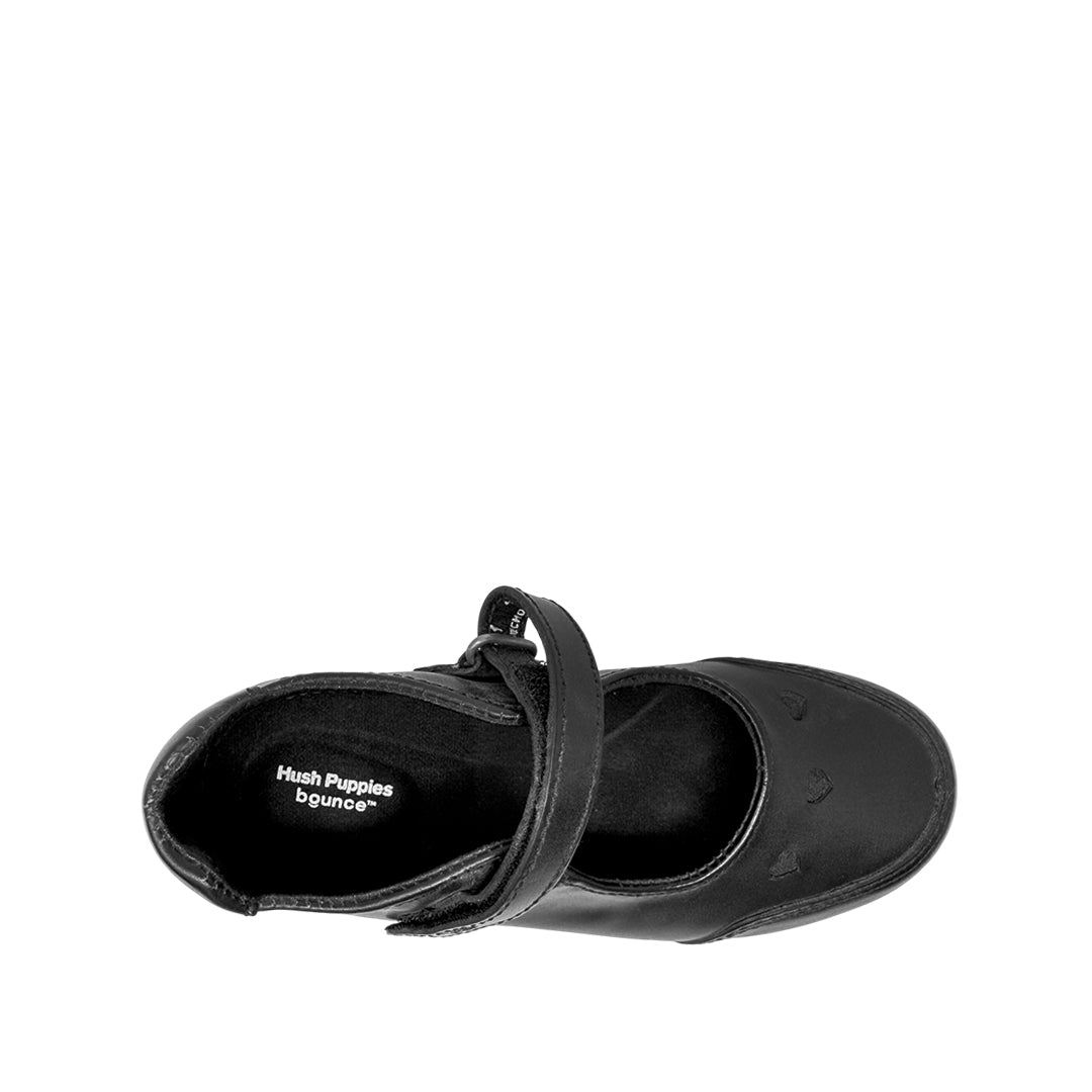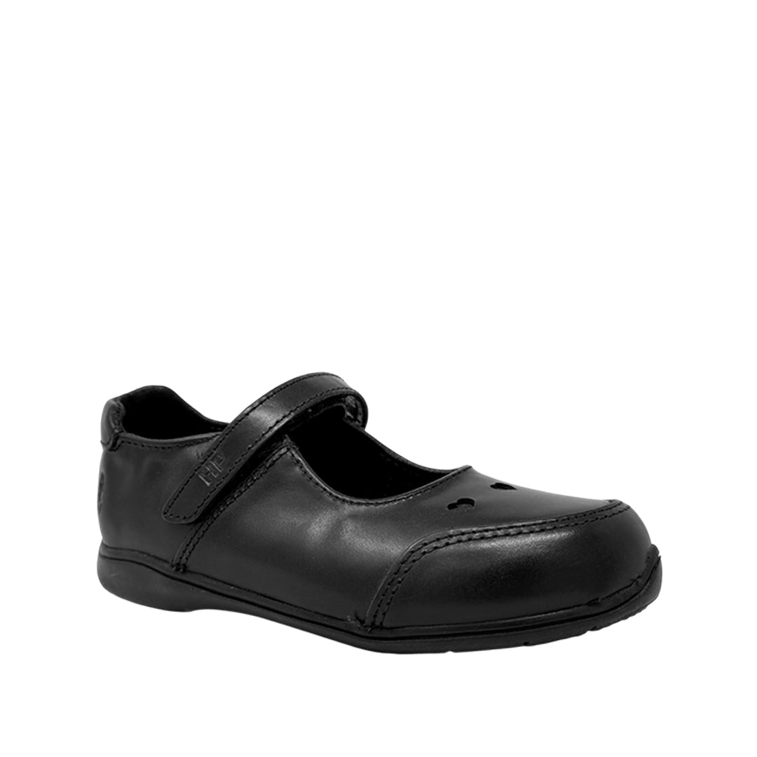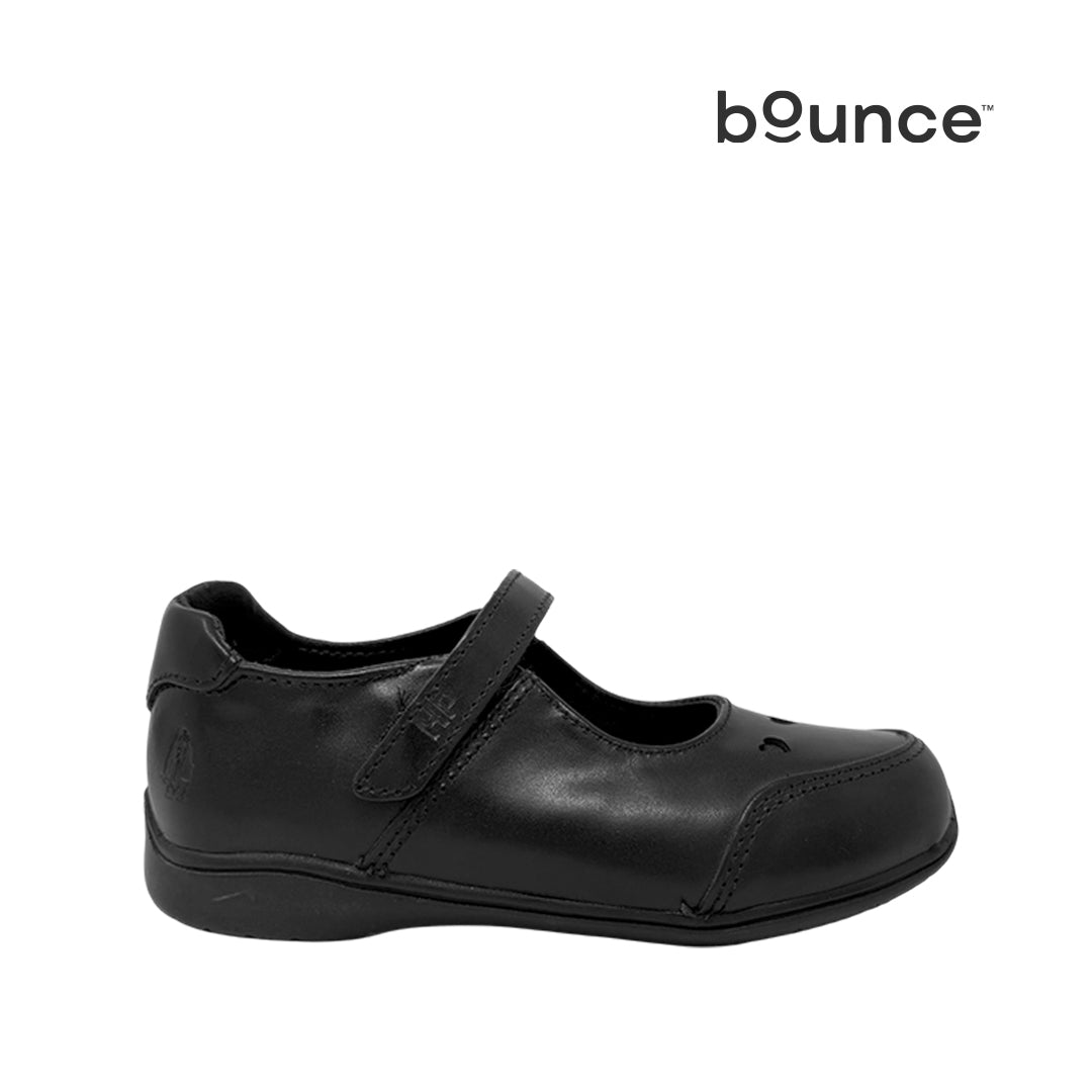 Ballerinas escolares Maite para niña en color negro con tecnología Bounce™. Plantilla extraíble de alta memoria que aporta rebote de energía, comodidad prolongada y conserva su forma original frente al uso diario.