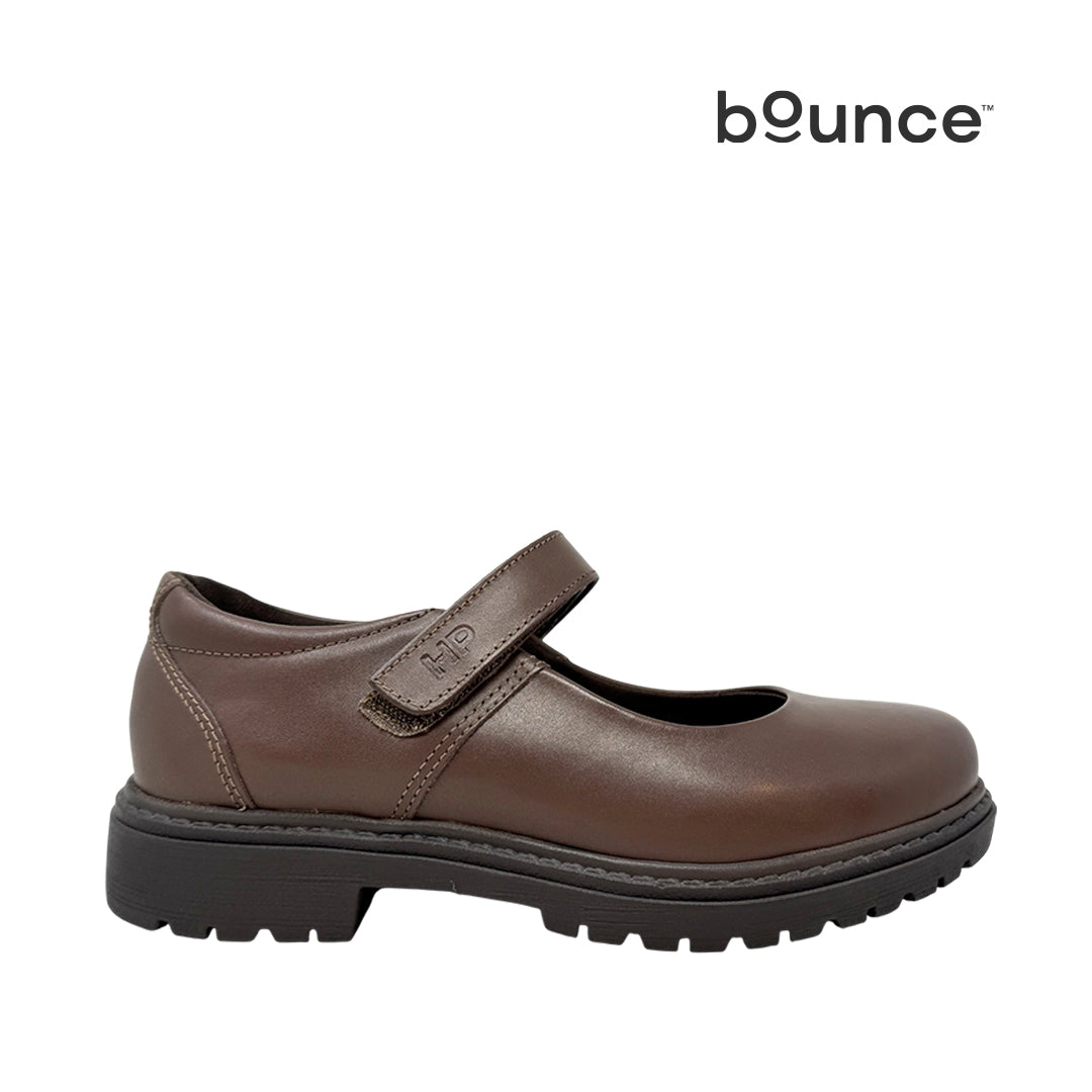 Ballerinas escolares Gladys para mujer color café con tecnología Bounce™ y plantilla de alta memoria que amortigua y devuelve energía en cada paso para comodidad todo el día y mayor durabilidad.