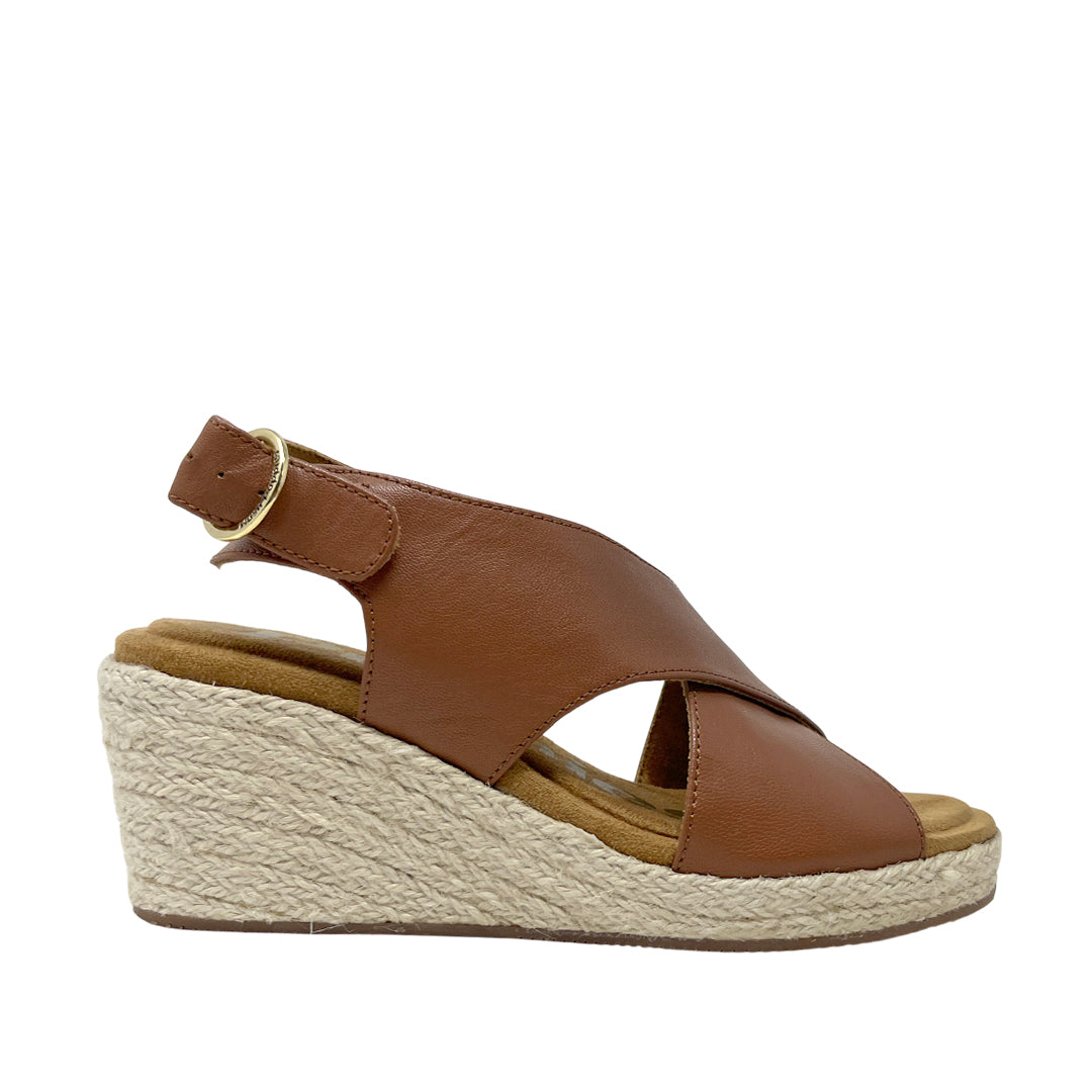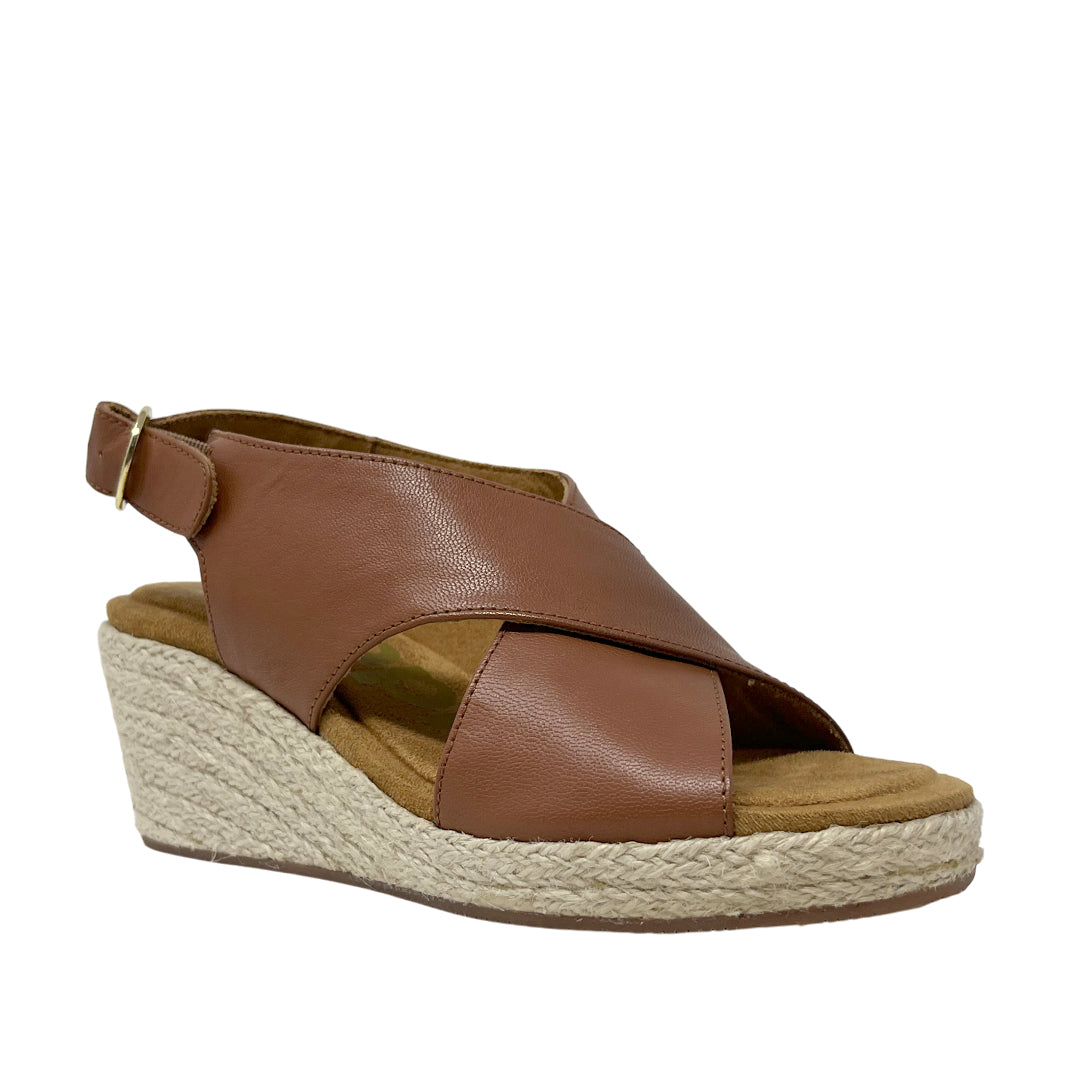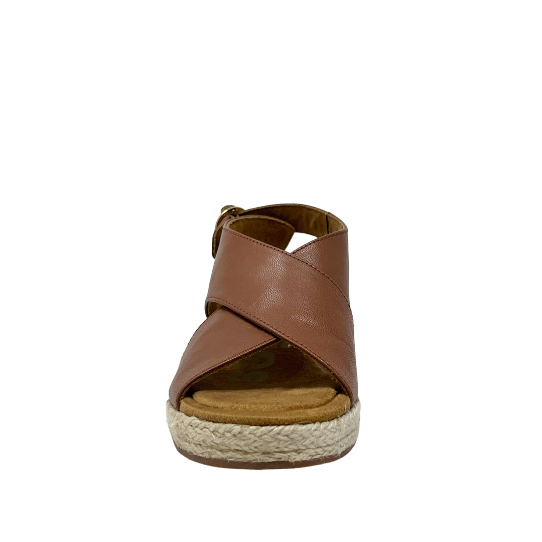 Sandalias de cuña Willow para mujer color cognac elaboradas en cuero. Incorporan la tecnología Bounce™, con plantilla extraíble que proporciona rebotes de energía en cada paso y garantiza comodidad durante todo el día. Su material de alta memoria retorna a su forma original después del uso, ofreciendo mayor durabilidad y un desempeño superior frente a otros materiales que solo brindan confort momentáneo.