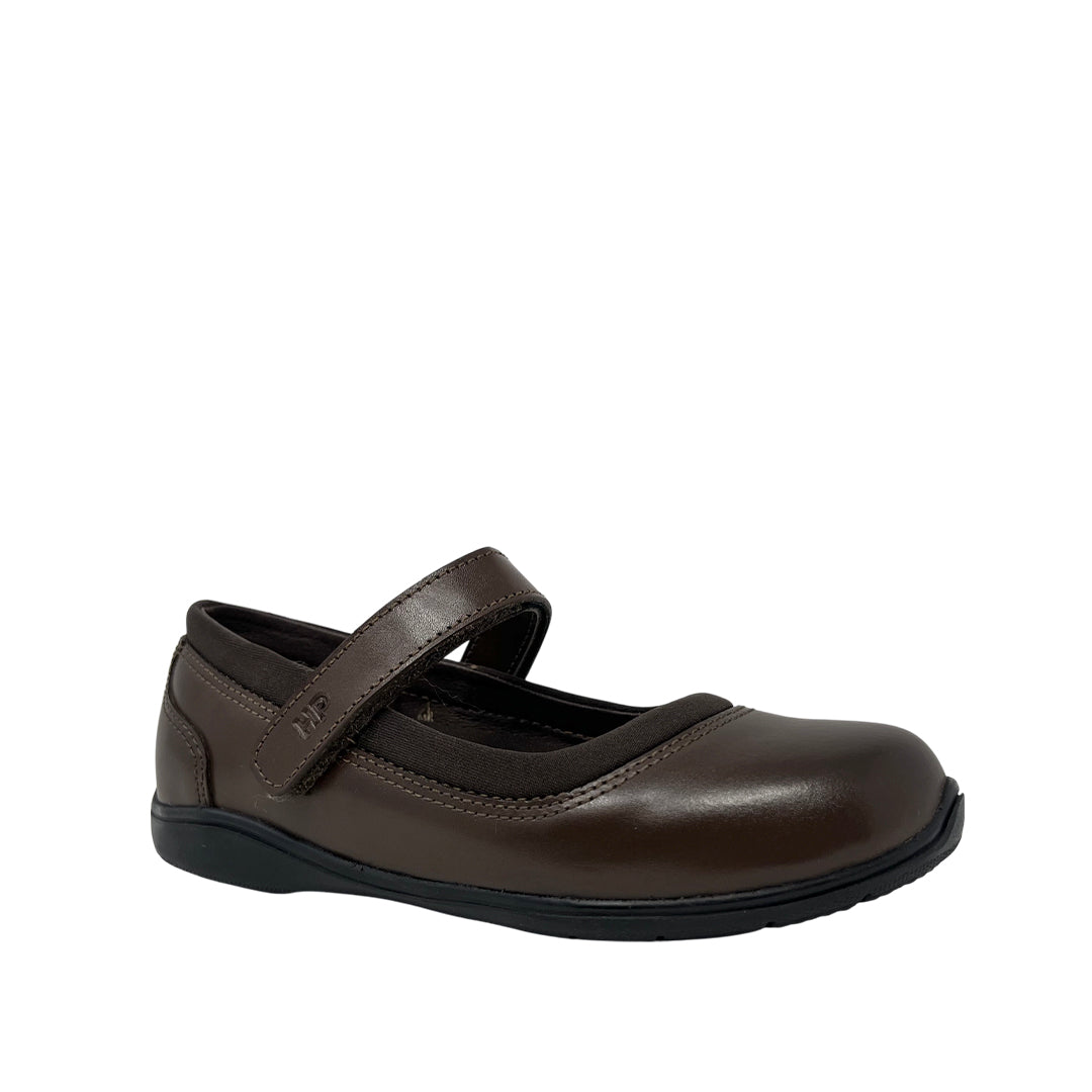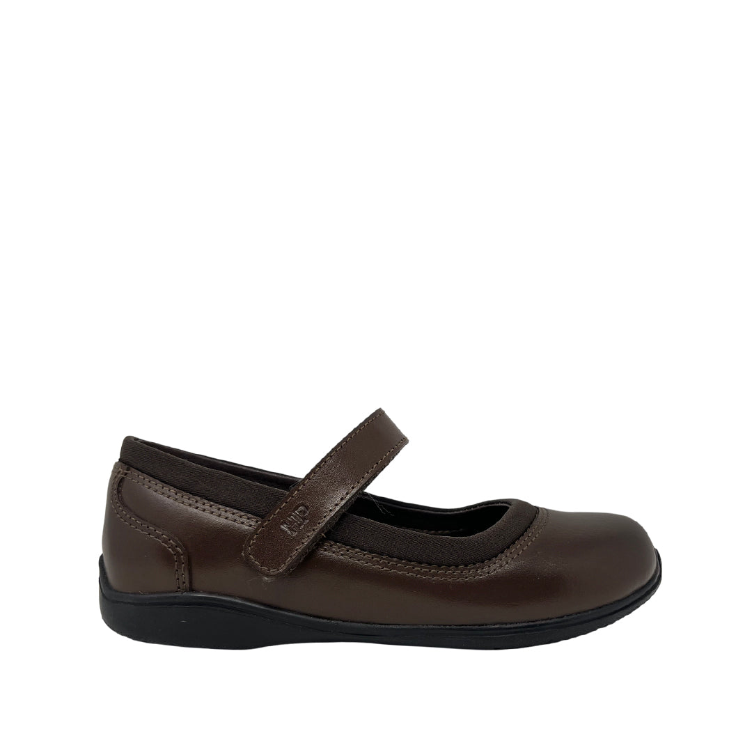 Ballerinas escolares Ileana para niña en color café con plantilla Bounce™ de alta memoria. Diseño clásico con comodidad duradera para el colegio.
